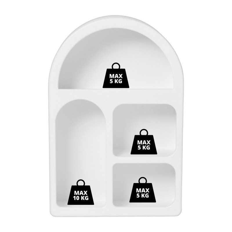 4 vakkenkast Zaha organic met boog - MDF - wit - 60x40x15 cm