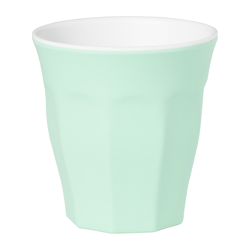 Mok duotone is groen van buiten en wit van binnen. Gemaakt van 100% melamine, dat betekent licht van gewicht en bijna niet breken. Geniet jij straks van een lekker drankje uit deze beker?