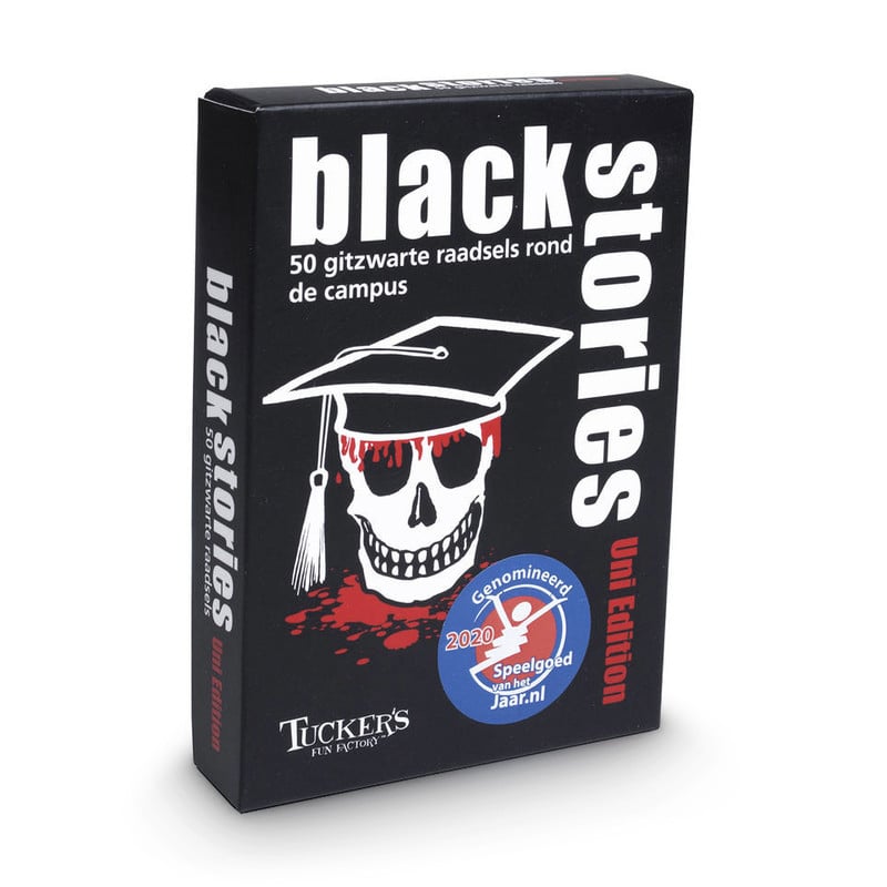 Black Stories zijn raadselspelletjes waarbij de spelers aan de hand van vragen moeten oplossen hoe iemand aan zijn/haar tragisch einde is gekomen. De oplossingen liggen niet voor de hand en de uiteindelijke onthulling is bijna altijd verrassend. Een speler leest een cryptische omschrijving voor die op een van de 50 kaarten staat en de anderen moeten vragen stellen die alleen met ja of nee beantwoord mogen worden. Deze versie gaat over situaties die binnen een universiteit plaatsvinden, dus extra leuk als partyspel voor studenten. De Black Stories vragen om creatief ‘out of the box’ denken en logisch redeneren om stap voor stap achter het verhaal te komen.