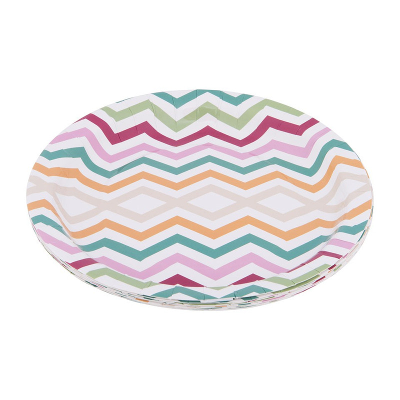 Is jouw zoon of dochter bijna jarig en organiseer je een kinderfeestje? Dan is deze set van 8 bordjes super handig om hapjes op te serveren. De borden zijn gemaakt van papier en hebben een vrolijke opdruk van strepens in allerlei kleuren. In deze serie zijn ook nog andere kleuren verkrijgbaar en ook bekertjes en servetten. Het feest kan nu al niet meer stuk.