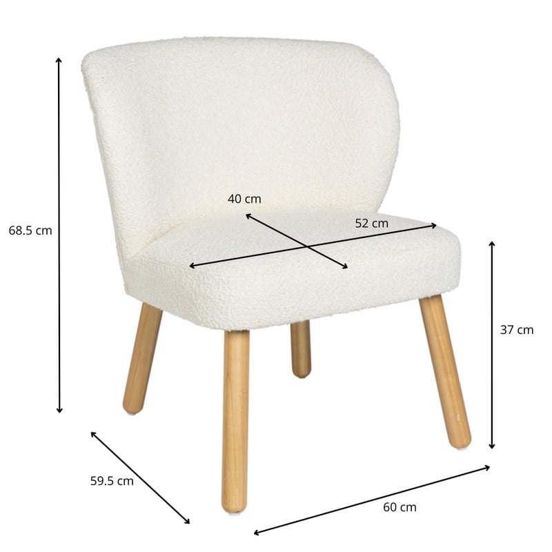 De boucle fauteuil is een comfortabele en luxe toevoeging voor iedere ruimte in huis! Door het grote en zachte zitvlak kun je hem gebruiken om een heerlijk leeshoekje in de woonkamer te creëren, maar hij staat met zijn rustige uitstraling ook super leuk in de kinderkamer. De stoel heeft met zijn on-trend boucle stof en houten poten een natuurlijke uitstraling. Combineer de boucle fauteuil met bijpassende boucle items of mix en match met andere kleuren en texturen voor een speels effect.