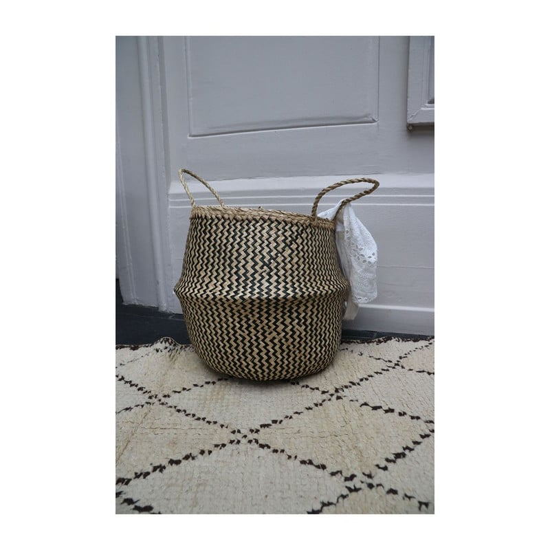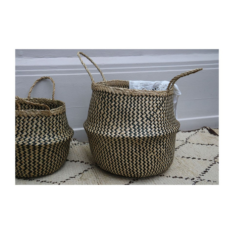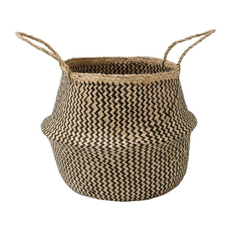 Compactor buikmand M, gevlochten mand in tweekleurig zeegras, trendy, zeer decoratief, ideaal om planten in te plaatsen, kan gebruikt worden als wasmand of om andere items op te bergen