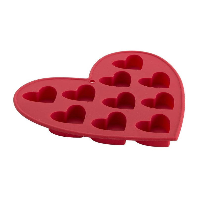 Met deze leuke vorm maak je de mooiste chocolade hartjes. De vorm is gemaakt van siliconen dus de chocola blijft niet plakken en is makkelijk uit de vorm te halen. Je maakt er 10 lieve kleine hartjes mee. Elk hartje heeft een afmeting van 3x2 cm. Bakkers, bakken maar ;-) MMM... genieten!