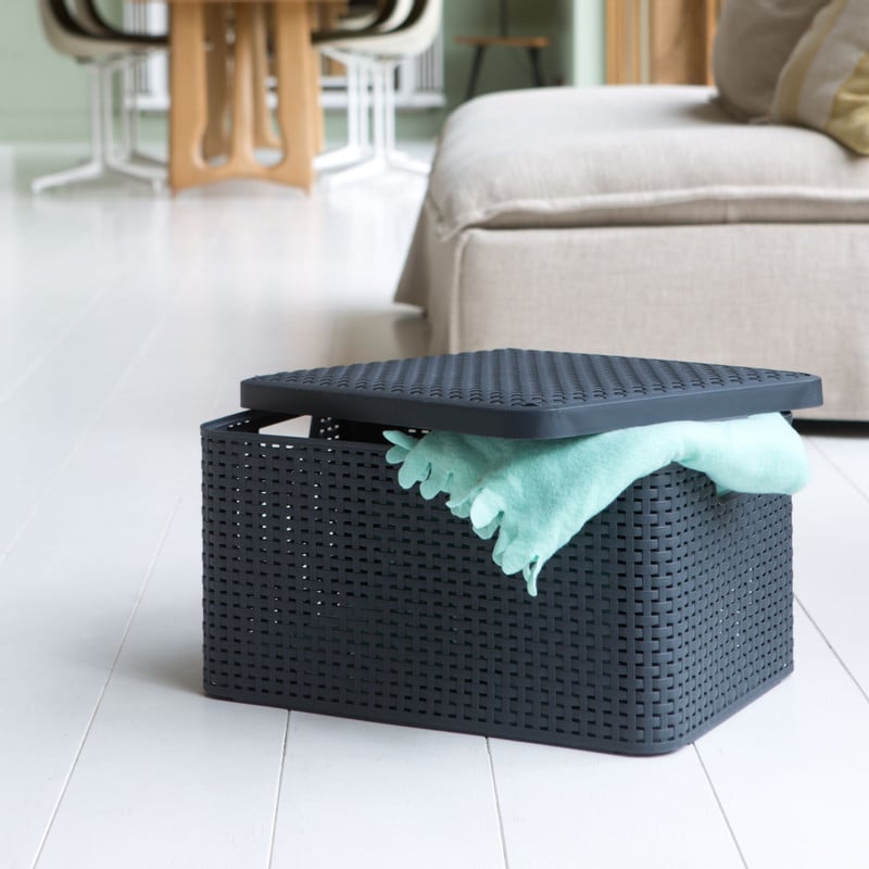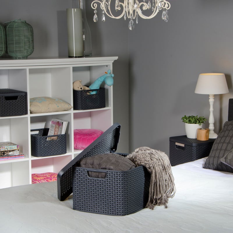 Curver opbergmand met deksel groot - grijs - 23x44x33 cm