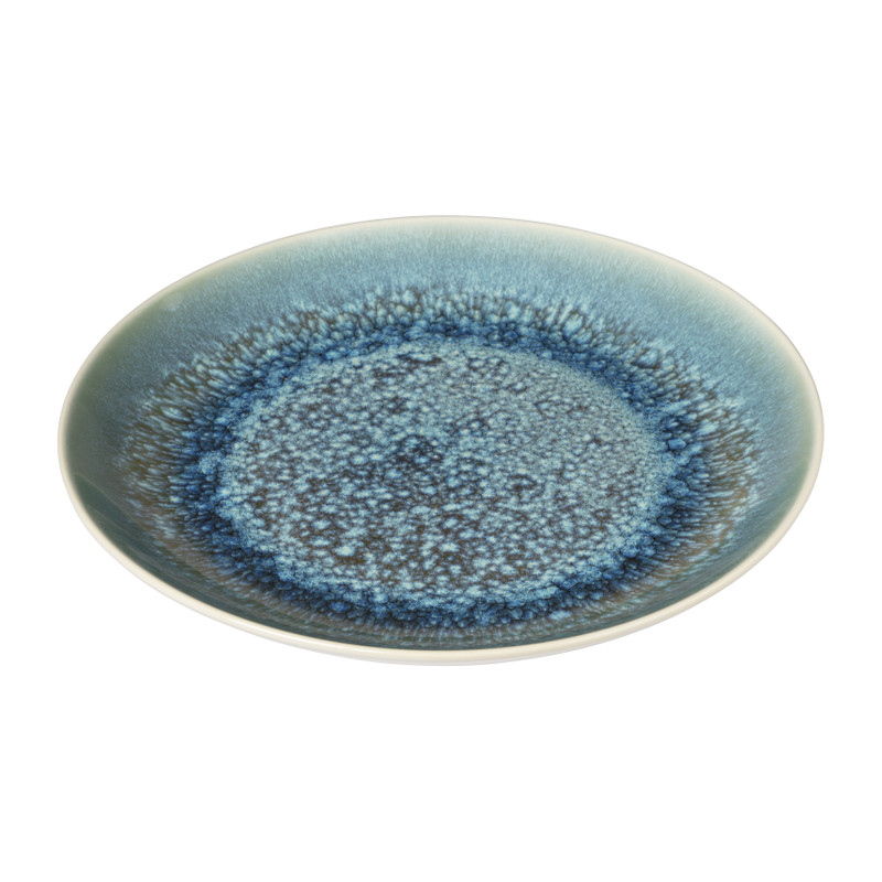 Het Caldera servies is gemaakt van reactive glaze, een bijzonder type glazuur dat wordt toegepast bij de productie van stoneware-items. Dit glazuur reageert op de chemische samenstelling van het materiaal en de omgeving tijdens het bakproces, waardoor elk stuk van deze set een unieke afwerking krijgt.