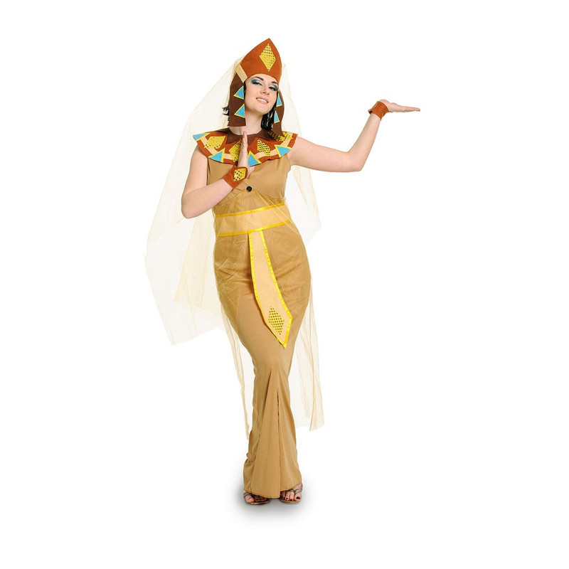Dit kostuum bestaat uit een Egyptische jurk, riem, kroon met sleep van tule, nek decoratie en armbanden.