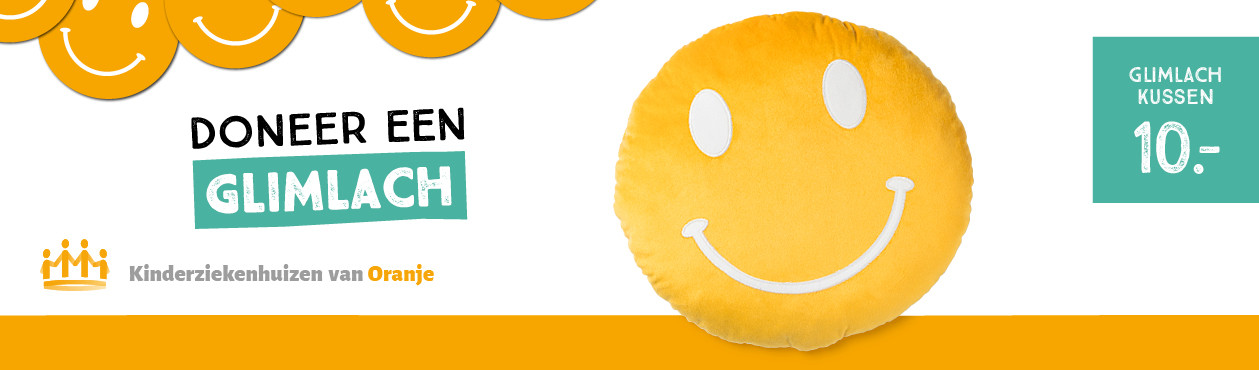 Voor de campagne is ook een speciaal glimlach kussen ontworpen, Xenos verkoopt deze in ruim 165 winkels en online op xenos.nl. De volledige opbrengst gaat naar Stichting Kinderziekenhuizen van Oranje.
