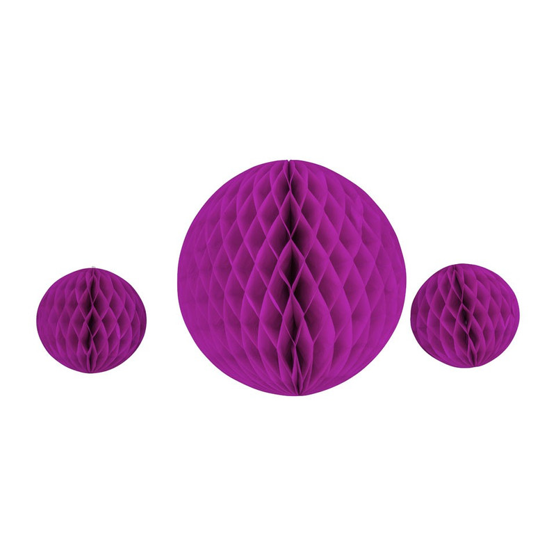 Deze ronde honeycombs hebben een super vrolijke roze kleur.Honeycombs zijn de nieuwste trends op decoratiegebied. Het zijn een soort lampionnen met honinggraad structuur. Leuk voor een feestje, maar ook gewoon ter decoratie in huis. Deze set bestaat uit 3 honeycomb ballen, één grote met een diameter van 25 cm en twee met een diameter van 12 cm. De honeycombs zijn verkrijgbaar in allerlei kleuren.