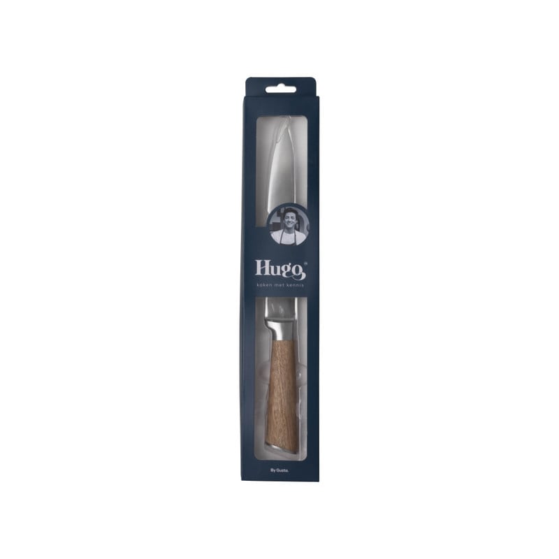 Met het Hugo Kennis vleesmes wordt het snijden van jouw favoriete stuk vlees een eitje. Dit elegante mes van hoogwaardig roestvrij staal is niet alleen vlijmscherp, maar ligt ook perfect in de hand. Dankzij de lengte van 33,5 cm heb je volledige controle over elke snede, van malse biefstukken tot sappige rollades. Een onmisbare tool voor de échte thuiskok die net als Hugo van lekker koken houdt!