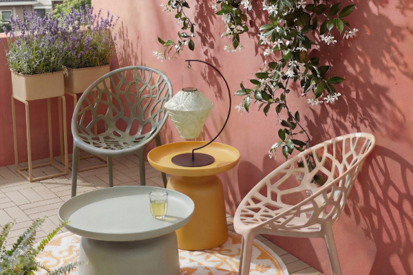 In een kleine tuin zijn verhoudingen alles. Kies liever voor compacte tuinmeubels dan voor grote, massieve tuinsets. Een bistroset of een smalle tuinbank met een klein tafeltje oogt veel luchtiger dan een grote eettafel. Kies bij voorkeur voor stapelbare tuinstoelen; zo creëer je snel extra zitplekken en ruim je ze net zo makkelijk weer op. Open frames of slanke materialen zoals metaal zorgen daarnaast voor een lichte uitstraling en laten je tuin ruimtelijker aanvoelen.