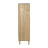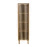Deze hoge, smalle Japandi-kast maakt van een klein hoekje een groots opbergpunt met stijl. Dankzij zijn hoogte biedt de kast meerdere planken om decoraties, boeken of planten op te plaatsen – alles netjes georganiseerd zonder veel vloeroppervlak te gebruiken. De elegante verticale latjes en de warme houtkleur geven het meubel de kenmerkende Japandi-look.
