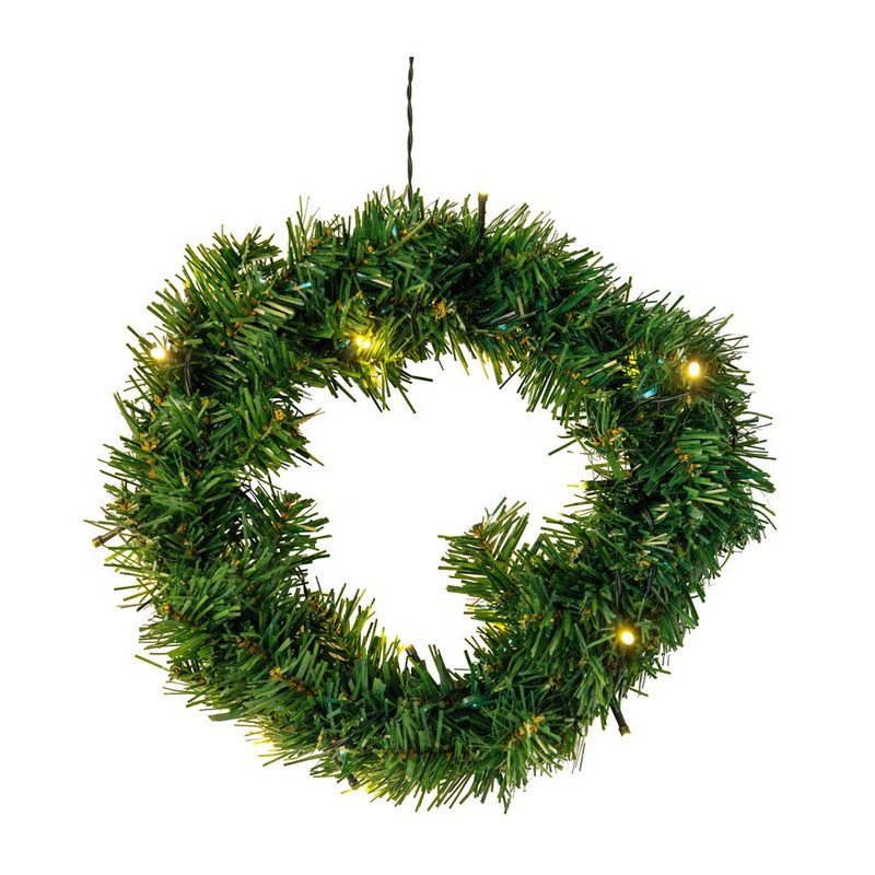 Zorg voor een super kerstsfeertje in huis. Gebruik deze prachtige krans om een raam of spiegel mee te decoreren. Je kan de krans binnen en buiten ophangen. Er zit een waterdicht batterijen compartiment bij zodat regen geen probleem vormt voor de lampjes. Hang 'm dus gewoon in de tuin of op de voordeur. De 20 LED lampjes in de kerstkrans werken op 3 AA batterijen. Handig!