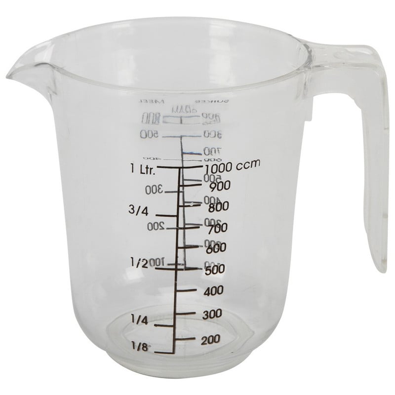 Met deze maatkan kun je voortaan alles perfect afmeten. Op de kan staan afmetingen voor vloeistoffen, suiken en bloem of meel aangegeven. Zo kun je dus heel makkelijk boullin maken voor in de soep of een saus. Ook suiker afwegen voor in bijvoorbeeld een lekkere appeltaart is voortaan een fluitje van een cent. De maatkan is gemaakt van kunststof en heeft een transparante kleur, hierdoor kun je heel duidelijk zien wat er in de kan zit en hoeveel er in zit. De maatbeker heeft bovendien een praktisch handvat en een schenktuitje. Door de anti-slip ring aan de onderkant staat hij ook nog eens erg stevig, zelfs op een vochtig aanrecht. De maatbeker heeft een inhoud van 1 liter en kan na gebruik gewoon in de vaatwasmachine.