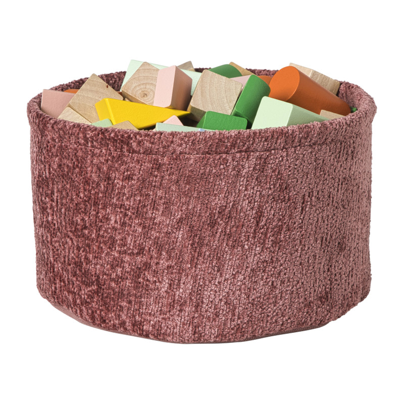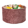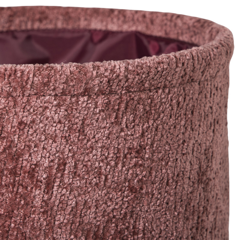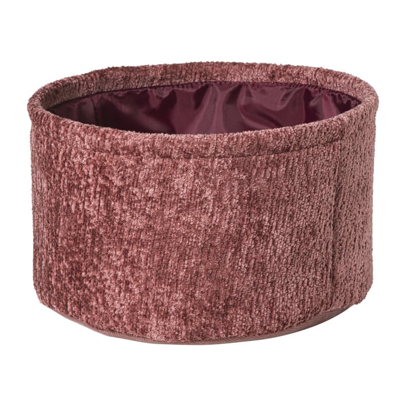 Deze ronde mand in rood chenille is heerlijk zacht én stijlvol. Met een formaat van 24x14 cm is hij ideaal voor kleine spullen zoals sieraden, make-up of bureauaccessoires.