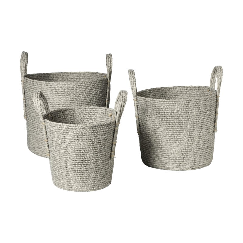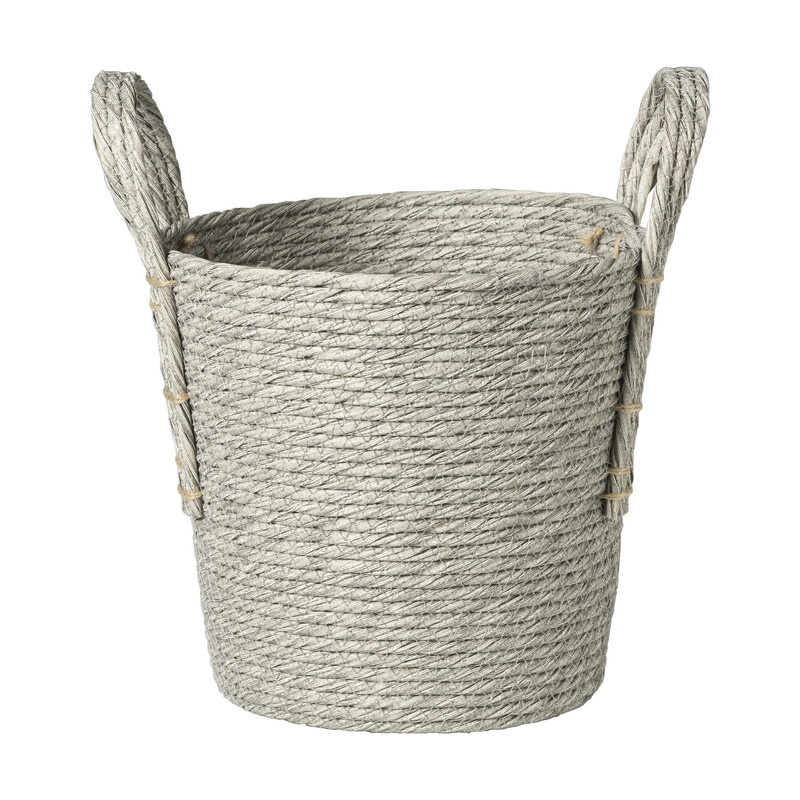 De mand is gemaakt van gerecycled kunststof en heeft een diameter van 22 cm en een hoogte van 23 cm. De kleur van deze mand is grijs.