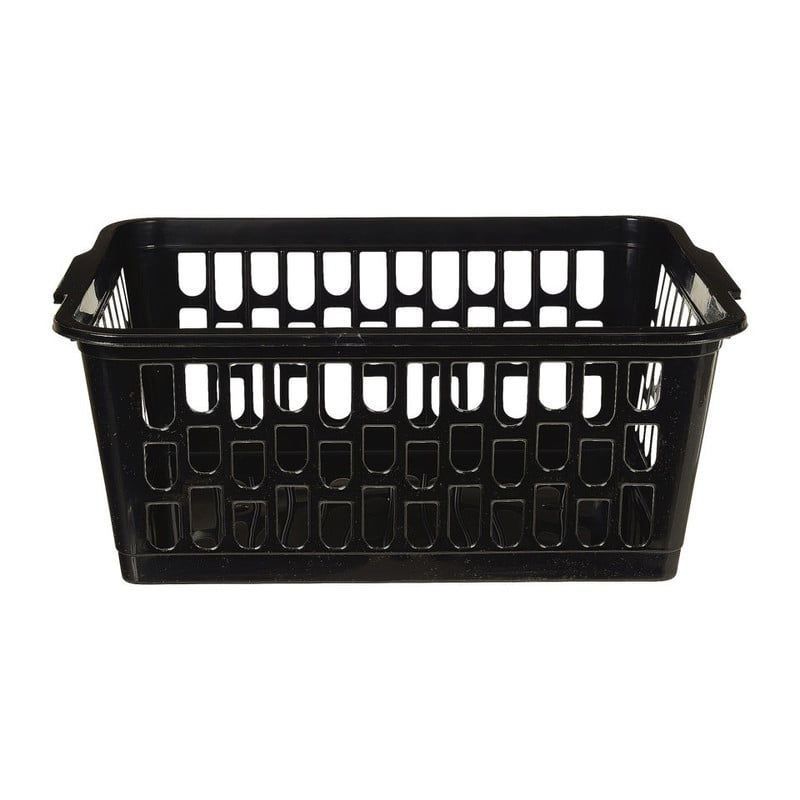 Zwarte kunststof mand met gaaswerk. De mand is geschikt om diverse spullen op te bergen. Zo kan je bijvoorbeeld al je sokken of ondergoed in de mand bewaren en in de kast zetten. Zo is alles netjes opgeruimd, maar kan je er ook zo bij om het te pakken. Maar je kan er ook het speelgoed voor je kind in bewaren of teken- en knutselspullen. Zo slingert alles niet rond in huis en is het mooi opgeruimd. Aan de bovenrand van de mand zijn twee kleine handgrepen gevormd zodat de mand eenvoudig kan worden opgepakt en verplaatst. De afmeting van de kunststof mand is 36,5x25,5x14,5 cm. Door het gaaswerk kan je ook eenvoudig zien wat er onder in de mand ligt. Hierdoor hoef je niet steeds alles uit de mand te halen om erachter te komen waar iets is gebleven, maar kan je het aan de buitenkant direct zien.