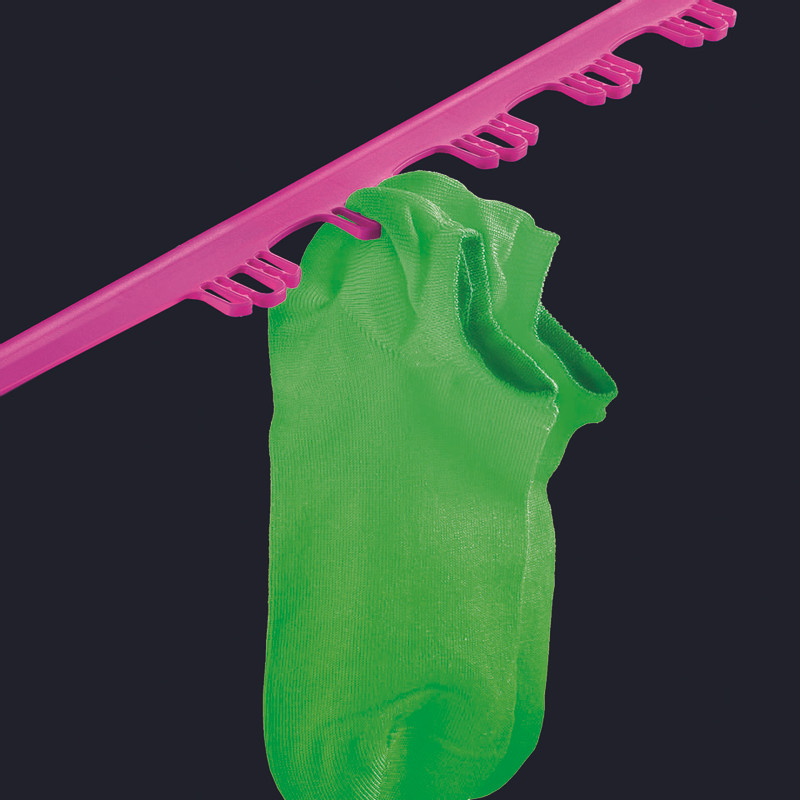Het Metaltex Hydra Neon pink droogrek. Met zijn 2 uitklapbare vleugels heeft een drooglengte van 18 meter. Het Hydra droogrek wordt geleverd met 2 houders voor bijvoorbeeld washandjes of sokken. Het Hydra droogrek is heel stabiel, een beetje hoger en breder dan standaard droogrekken. In gebruik zijn de afmetingen van 180x55 x106 cm en opgevouwen is dit slechts 55x5,5x107 cm. Deze Metaltex Hydra droogrek behoort tot de Neon collectie welke zich kenmerkt door een leuke fluo antistatische Epoxy coating in combinatie met satijnzwarte kunststofonderdelen. De Epoxy coating is een materiaal dat het elektrostatisch worden van de kleding tegengaat. Na gebruik buiten, binnen opbergen. 2 jaar garantie zijn inbegrepen. Made in Italy.