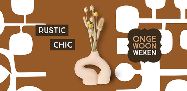 Met deze stijl breng je donkere materialen in combinatie met natuurlijke tinten in huis. Rustic Chic is geïnspireerd op ruige texturen, organische vormen en aardse tinten uit de natuur. De aardse tinten worden gecombineerd met oker en natuurlijke materialen als hout, rotan en riet. Ook komen de organische vormen terug in de vazen en kaarsen. Stijl jouw huis af met kussens van verschillende materialen om het compleet te maken.