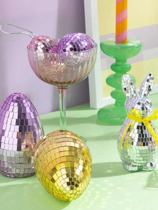Breng een vleugje glamour in je paasdecoratie met dit kleine disco paasei Met een doorsnede van 5.7 cm en een hoogte van 7.7 cm is dit feestelijke paasei de perfecte toevoeging aan je interieur. Het disco-effect in diverse sprankelende kleuren zorgt voor een moderne en vrolijke uitstraling, ideaal voor een opvallende paasversiering. Gemaakt van lichtgewicht polyfoam is het ei eenvoudig te verwerken in paasstukken, kransen of decoratieve schalen. Combineer meerdere kleuren voor een levendige en feestelijke sfeer.