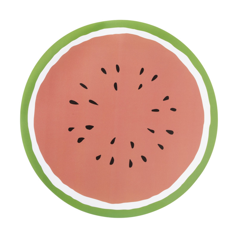 Zomers, fris en lekker speels: deze ronde placemat is geïnspireerd op een watermeloen en brengt meteen een vrolijke touch aan je tafel. Ideaal voor een picknick, barbecue of gewoon een gezellige lunch. De placemat heeft een diameter van 38 cm en is gemaakt van polypropyleen, wat gemakkelijk schoon te maken is.
