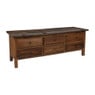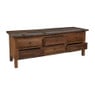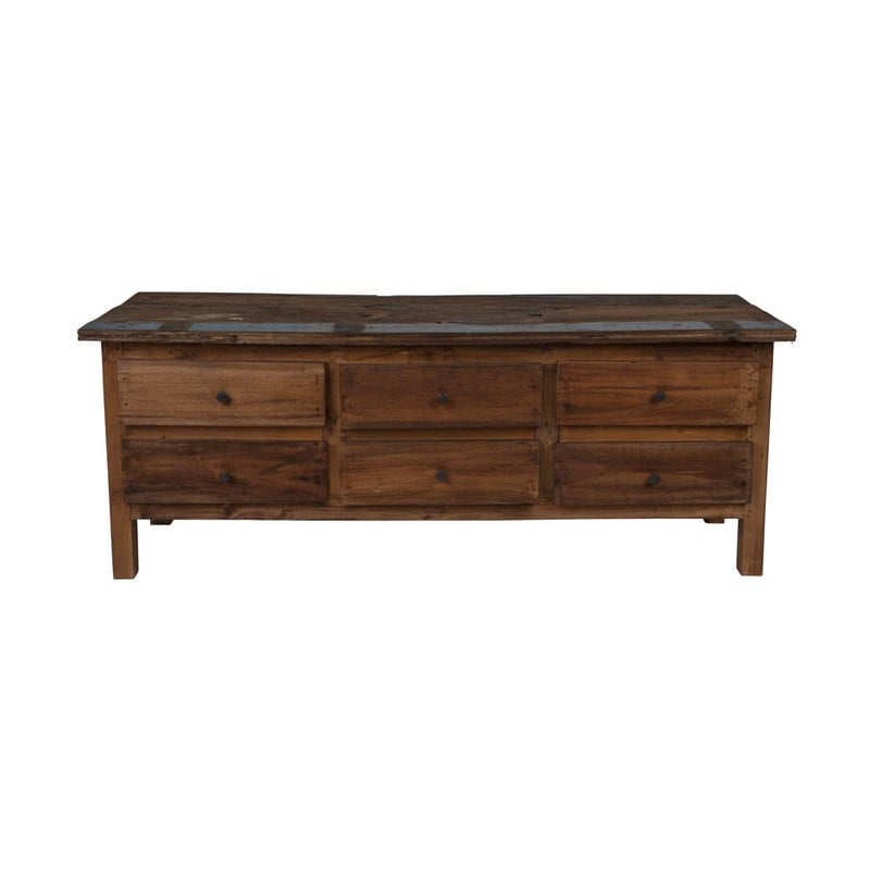 Dit praktische dressoir is een robuuste eyecatcher in elke kamer. Van tv-meubel tot salontafel, deze kast zal stijlvol in jouw interieur staan. De robuuste uitstraling van de kast past goed in een industrieel of landelijk interieur. De dressoir heeft een afmeting van 50x150x54 cm, waardoor deze perfect is om je televisie op te zetten. De kast is voorzien van 6 lades met een donkere stalen meubelknop, wat mooi past bij het gerecyclede hout. Ideaal om je afstandsbediening, plaids of boeken in op te bergen. Leuk om dit exemplaar te combineren met andere meubels van gerecycled hout.