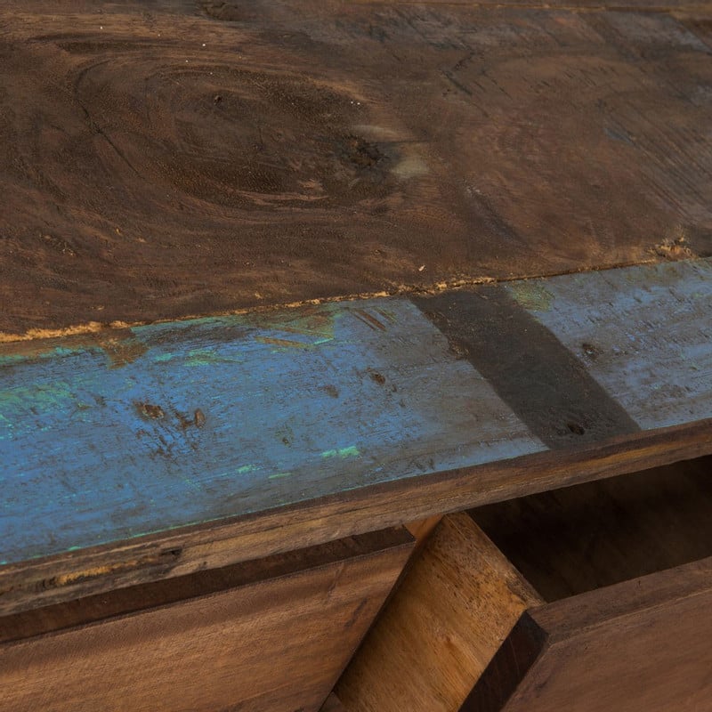 Dit is een dressoir met een verhaal. De kast is namelijk door de lokale bevolking in Indonesië gemaakt. Met de hand en van gerecycled hout. Bijvoorbeeld van de houten laadbakken van oude trucks die gesloopt worden. Het hout wordt nauwkeurig geselecteerd, dit maakt elk product uniek en zeer duurzaam.