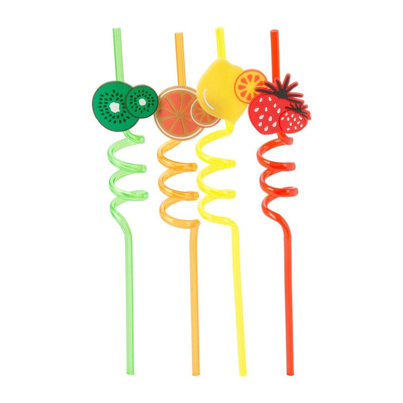 Die cocktail wordt nóg lekkerder met deze super toffe rietjes. Er zitten 4 exemplaren in deze set. Een groene met een een kiwi, een gele met een citroen, een oranje met een sinaasappel en een rode met een aardbei. Ook erg leuk voor de kinderen om hun drankje hiermee op te drinken.