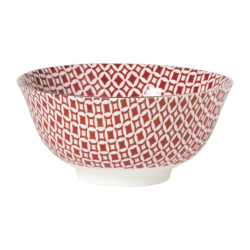 Schaaltje Mirna ruit groot - rood/wit - ø15.5x7 cm