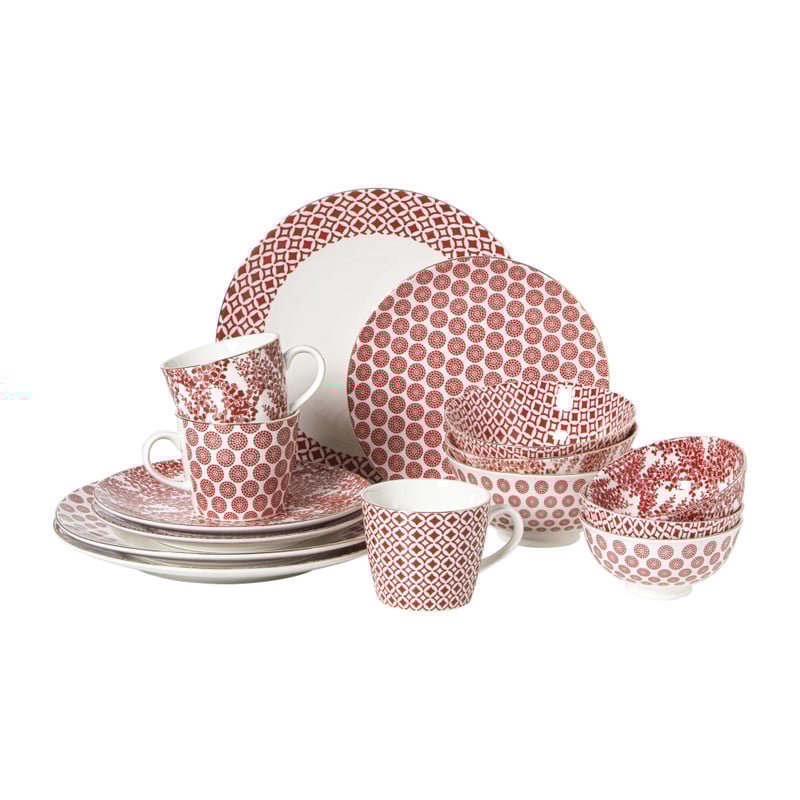 Serviesserie Mirna combineert frisse rood-witte printjes met speelse patronen. Of je nou de hele tafel in één patroon dekt of lekker mixt en matcht: het resultaat is altijd gezellig, kleurrijk en nét even anders. Van dinerborden tot mokken, van ontbijtbordjes tot schaaltjes: elk stuk is gemaakt van stevig porselein en voorzien van een levendige print. Perfect voor een knusse brunch, feestelijk diner of dagelijkse dosis vrolijkheid aan tafel.