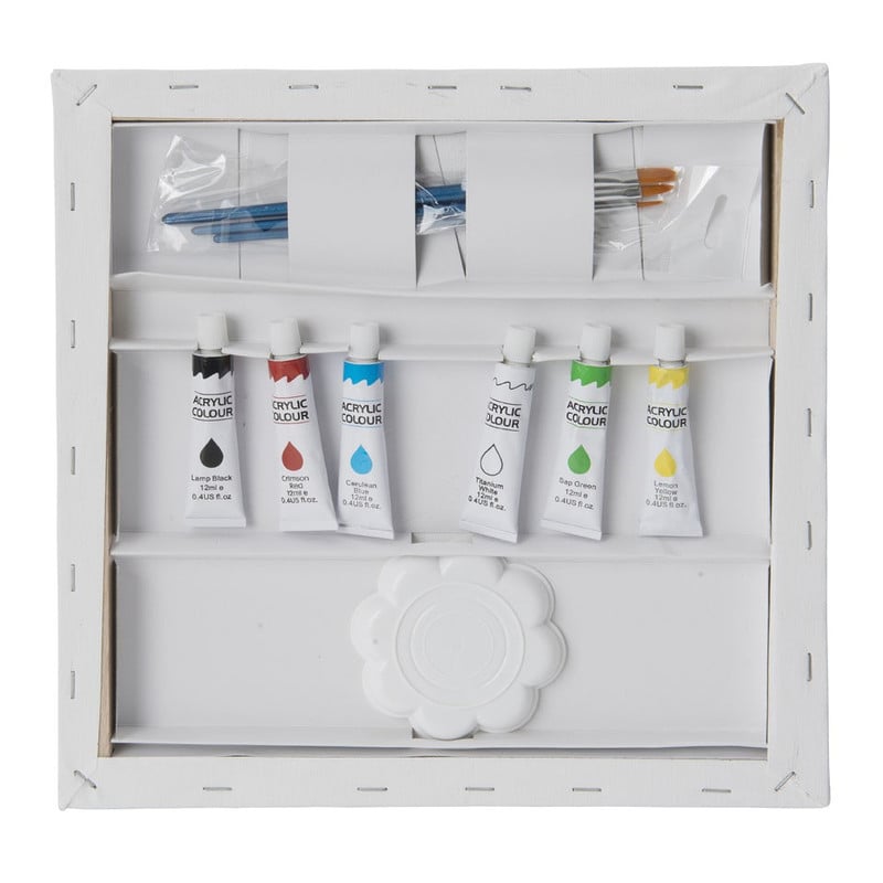 Creëer een prachtig kunstwerk met dit schilderij in de vorm van een mandala. Je schildert op nummer om er een mooi geheel van te maken. Natuurlijk kun je er ook je eigen draai aan geven. De inhoud van dit pakket bevat 1 canvas van 30x30 cm, 6 kleuren verf, 3 kwasten en 1 mengpalet. Ook staat er aangegeven hoe je bepaalde kleuren kunt mengen.