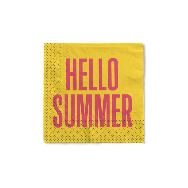 Zeg hallo tegen de zomer met deze kleurrijke servetten in geel en roze. De “hello summer”-print zorgt direct voor een zonnige sfeer aan tafel. Formaat: 33x33 cm.