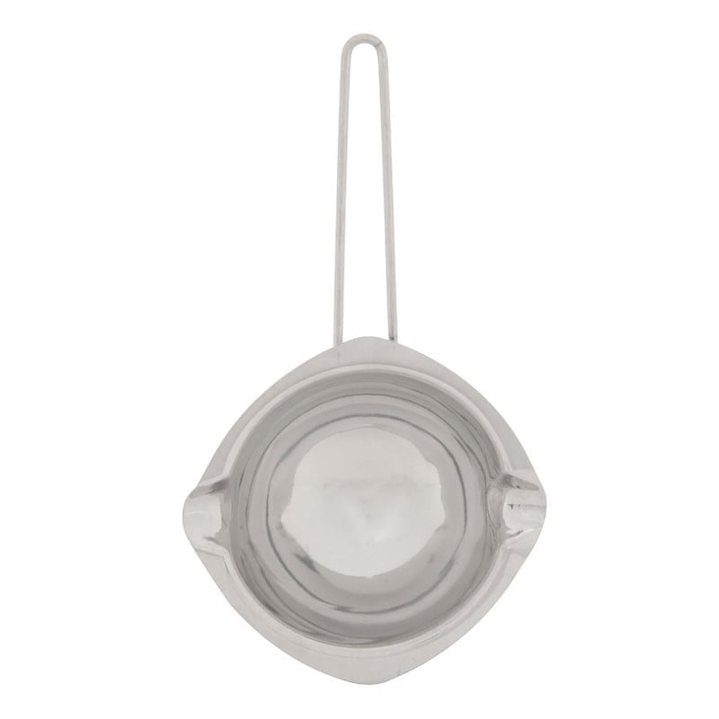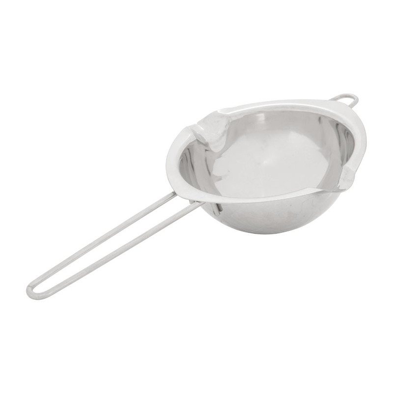 Chocolade smelten voor op een taart? Gebruik dit handige smeltpannetje. Dankzij het haakje aan het uiteinde kun je deze makkelijk boven een pannetje met kokend water hangen. De schenktuitjes aan beide zijkanten zijn super handig om de chocolade over de taart te schenken.
