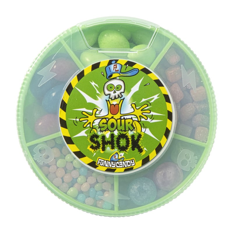 Zet je smaakpapillen onder stroom met deze Sour Shok Elektro Mix. Een mix van kleine zuurbommetjes in verschillende smaken – perfect voor wie niet kan kiezen tussen zoet, zuur en écht intens. Leuk om te delen of als speelse traktatie.