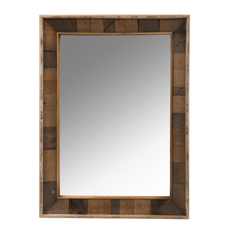 Deze grote spiegel met een afmeting van 60x80 cm heeft een brede houten rand. De rand is gemaakt van hout in verschillende tinten. Hierdoor past de sierspiegel in vrijwel elk interieur. Hang deze bijvoorbeeld op in de slaapkamer of in de woonkamer en voeg een echte eyecatcher toe.