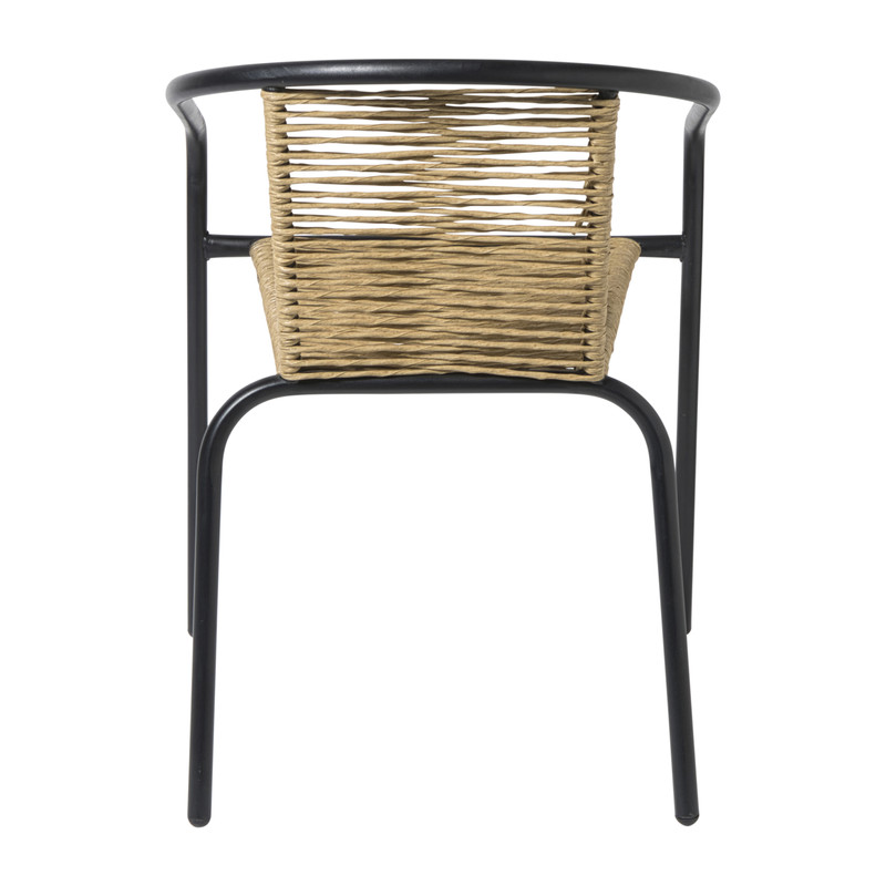 Geniet van comfort en stijl in je tuin, balkon of terras met deze stapelbare tuinstoel met rotan look! Dankzij het luchtige ontwerp, de natuurlijke wicker zitting en het stevige zwarte stalen frame, is deze stoel dé eyecatcher in je buitenruimte deze zomer. Handig: deze stoel is stapelbaar, waardoor je hem makkelijk kunt opbergen als je extra ruimte nodig hebt. Ideaal voor een gezellig etentje in de tuin of als extra zitplaats voor gasten. Creëer een gezellige en stijlvolle buitenruimte met deze stapelbare rotan tuinstoel. Perfect voor zomerse diners, ontspannen koffiemomenten en gezellige avonden in de tuin!