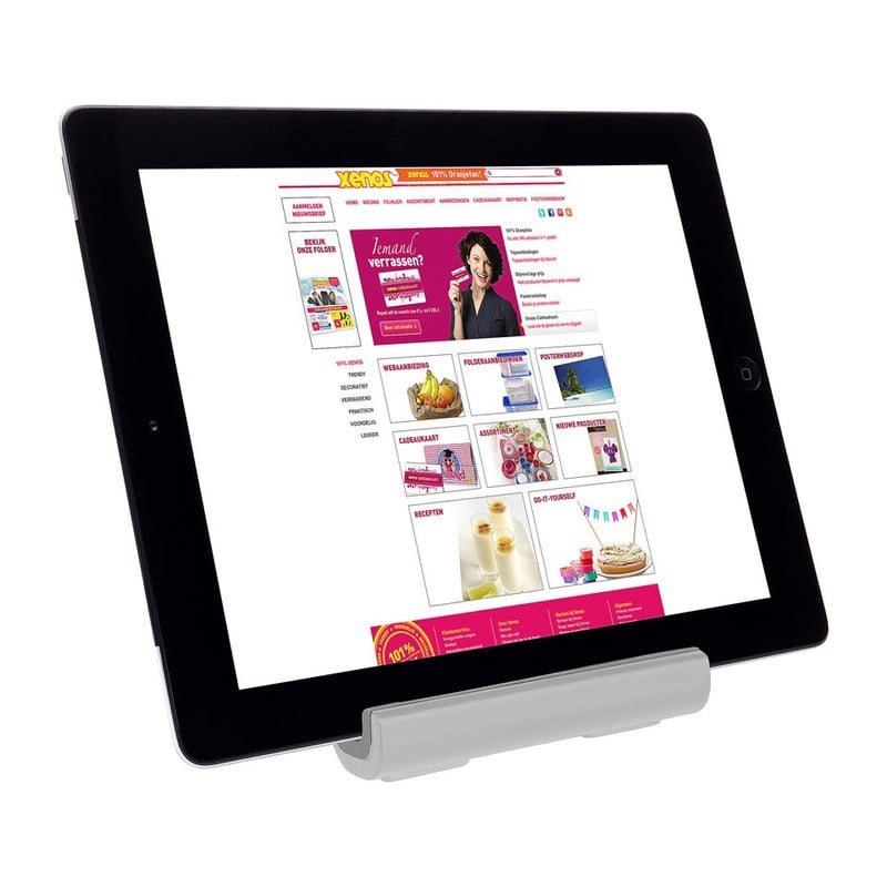 Met deze tabletstandaard kun je jouw tablet horizontaal en verticaal neer te zetten. De standaard heeft een verstelbare kijkhoek, zodat je het scherm plat of juist meer rechtop neer kunt zetten. De rubberen antislippunten onder de standaard zorgen voor stabiliteit van je tablet. De tabletstandaard van Xenos is eenvoudig op te vouwen en is daardoor handig voor op reis.
