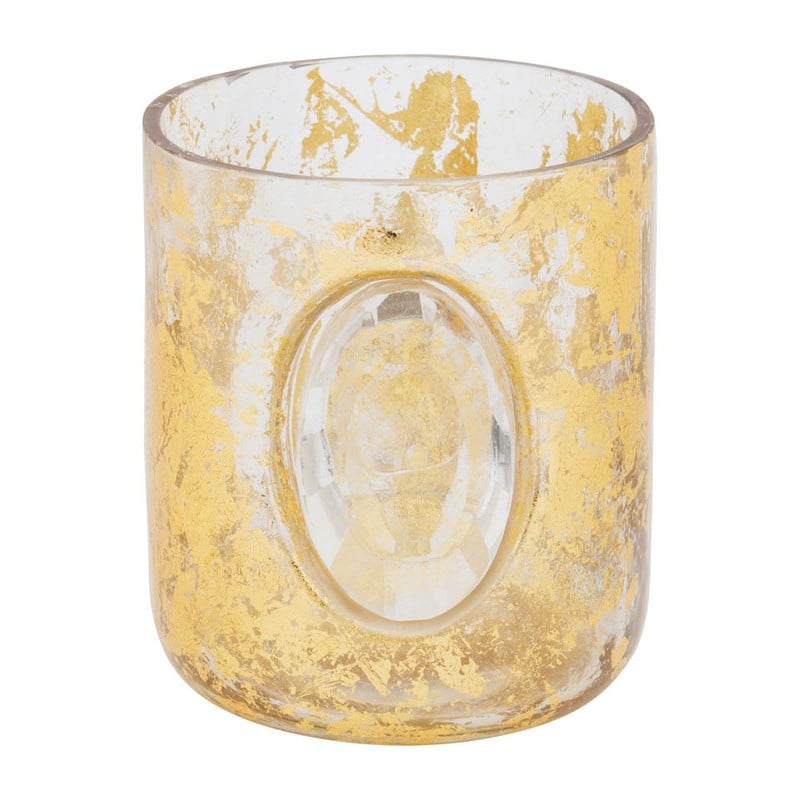 Deze theelichthouder is prachtig in huis. De goudkleurige houder is gemaakt van glas en is voorzien van een sierlijke steen. Door het licht van een brandend theelicht in de houder komt de steen erg mooi uit.