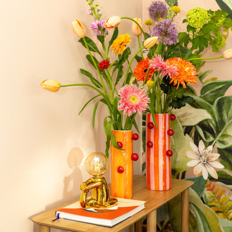 Vaas streep met bolletjes - oranje/rood/roze - 32x11.5x9.5 cm - Happy at Home by Sanny
