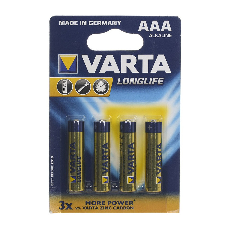 Deze set Varta Micro AAA batterijen is altijd handig om in huis te hebben. Je vervangt op die manier in een handomdraai de lege batterijen van een afstandsbediening, zaklamp, klok of ander apparaat in huis. Ideaal! De batterijen gaan extra lang mee en hebben een capaciteit van 1,5V. Let op! Deze batterijen zijn niet geschikt om op te laden.
