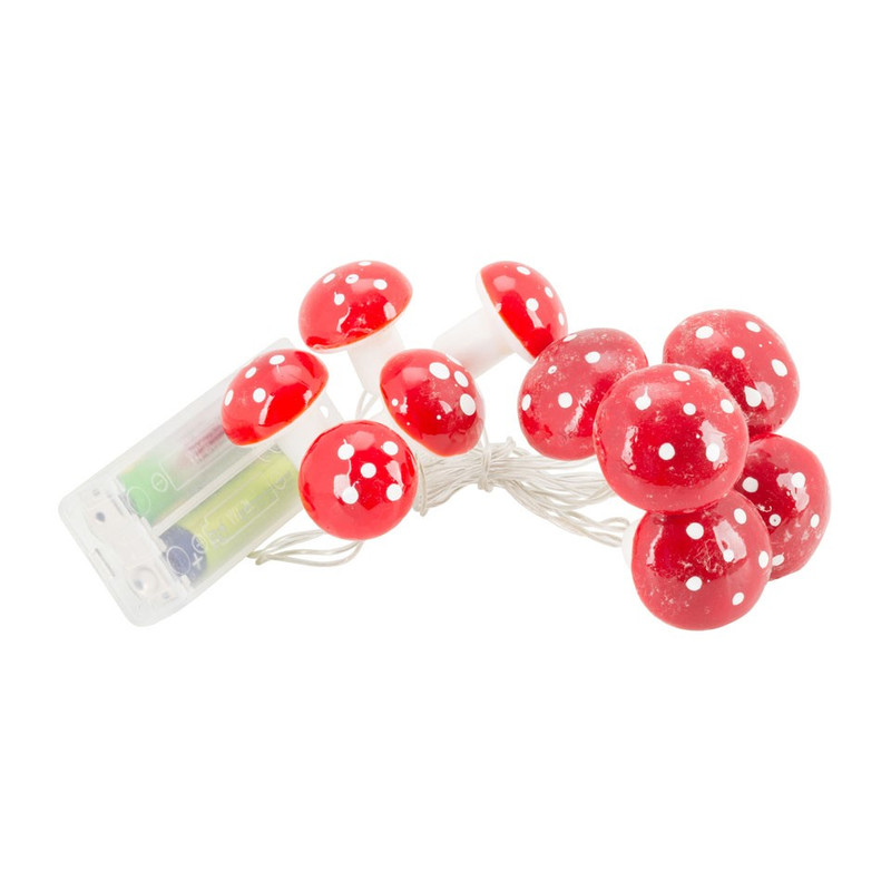 Breng herfstsferen in huis met deze leuke paddenstoelen lampensnoer. Er zitten 10 paddenstoelen aan met allemaal een LED-lampje. De lichtsnoer werkt op 2 AA batterijen.