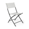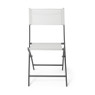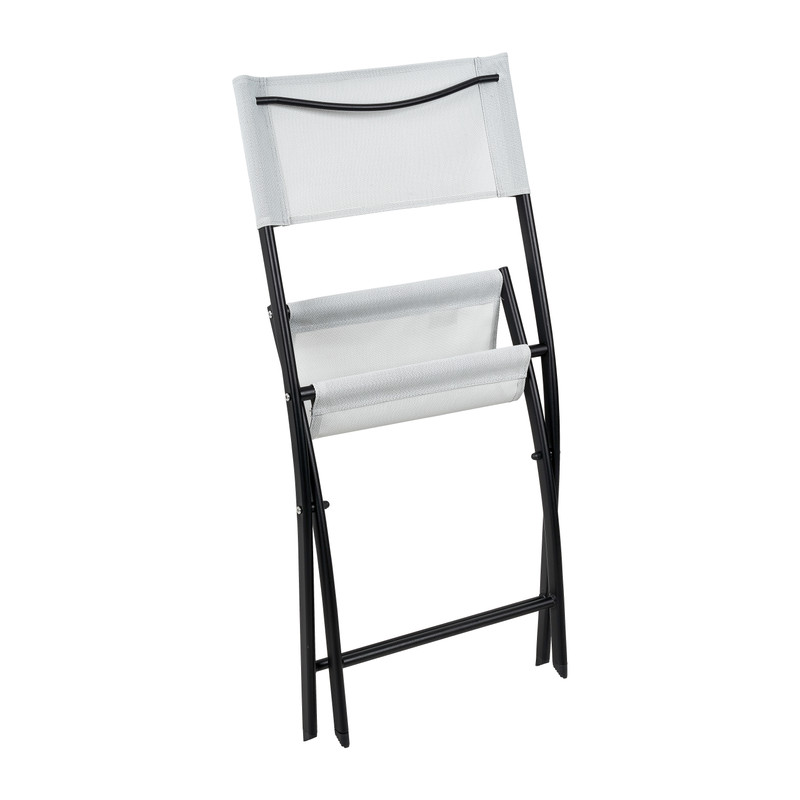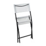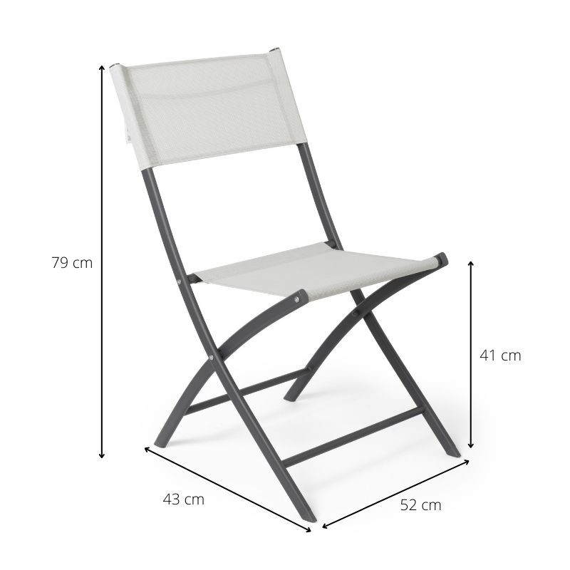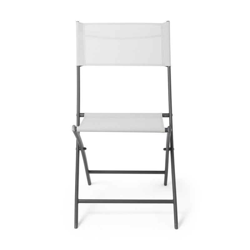 De vouwstoel is gemaakt van metaal, komt in een witte kleur en heeft een maximale draagvermogen van 110 kg.