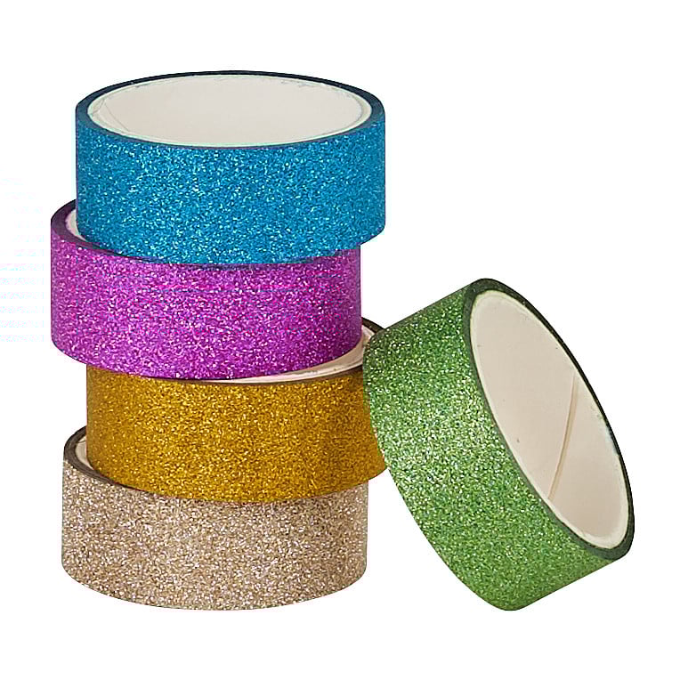 Het gebruik van deze rollen washi tape is verslavend. Gebruik de gekleurde rollen glitter plakband om cadeaus mooi in te pakken of je agenda te versieren. Ook helemaal stylish verantwoord: mooie kaartjes aan de muur hangen met washi tape. In de set zitten 5 rollen glitter tape in de groen, blauw, roze, goud en zilver. De washi tape is 2,5 meter lang en 1,5 cm breed.