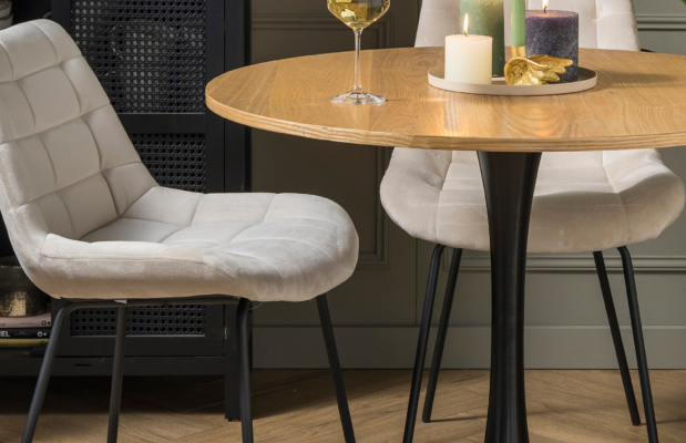 Een kenmerkend materiaal voor een hotel chique gevoel is velvet. Ga bijvoorbeeld voor velvet eetkamerstoelen met een zwarte metalen frame. Door de textuur van de stof en de zwarte metalen poten geef je jouw eetkamer al meteen een comfort uitstraling. Ook teddy stof is een goede keuze voor jouw eetkamerstoelen. Bij Xenos vind je verschillende eetkamerstoelen tegen een lage prijs!