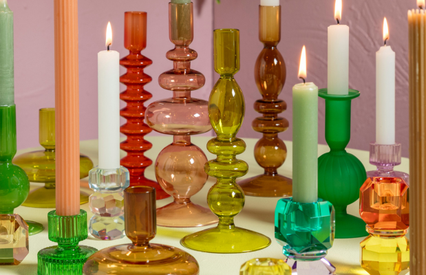 Dip dye, gedraaid of in een mooi kleurtje. Een paar dinerkaarsen bij elkaar zorgen altijd voor een gezellig hoekje in huis. Plaats de kaarsen in glazen kandelaars en speel met verschillende hoogtes en kleuren.