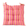 Geef je stoelen een vrolijke upgrade met dit gestreepte zitkussen! De kussens geven je interieur of tuinset direct een kleurrijke touch. Met een afmeting van 40x40 cm en een zachte vulling zit je altijd comfortabel, of het nu aan de eettafel, in de tuin of op het balkon is. De kussens zijn voorzien van 2 handige strikjes, zodat je de kussens gemakkelijk aan een stoel knoopt.